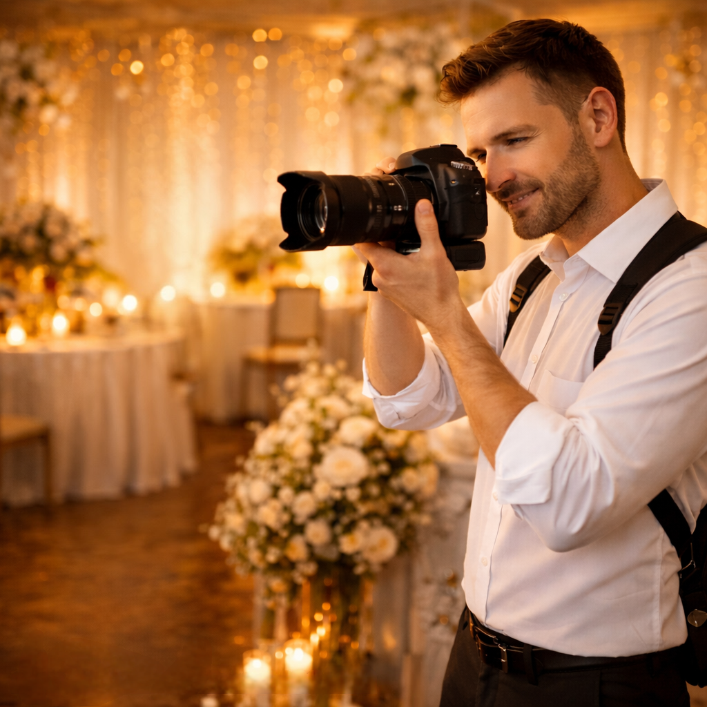 Ο φωτογράφος αποτυπώνει τις πιο σημαντικές στιγμές της εκδήλωσής σας με αισθητική, συναίσθημα και επαγγελματισμό, δημιουργώντας εικόνες που θα κρατήσουν ζωντανές τις αναμνήσεις σας για μια ζωή. Με έμφαση στη λεπτομέρεια, τον φωτισμό και τις αυθόρμητες στιγμές, κάθε φωτογραφία αφηγείται τη δική της ιστορία.