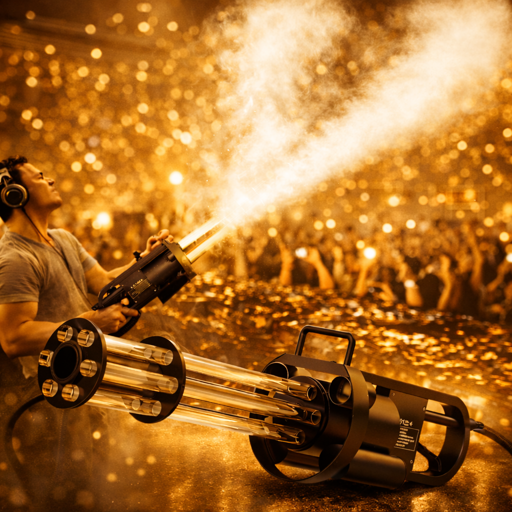 Τα CO2 Jet Guns LED προσφέρουν ισχυρή και συνεχή εκτόξευση ψυχρού καπνού, δημιουργώντας θεαματικά “jet blasts” που θυμίζουν μεγάλα club shows και φεστιβάλ.