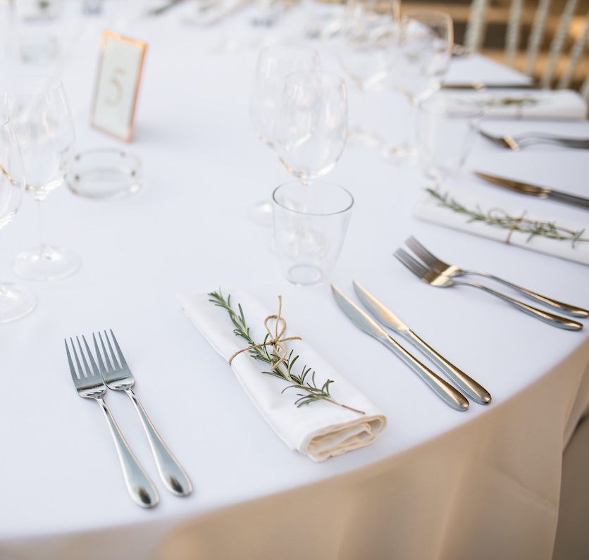 Παραδίδουμε πλήρη σετ με μαχαίρι, πιρούνι και κουτάλι υψηλής ποιότητας. Μετά το πέρας της εκδήλωσης, εμείς αναλαμβάνουμε την παραλαβή του εξοπλισμού. Επιπλέον, διαθέτουμε υφασμάτινες Πετσέτες Τραπεζιού σε κλασικές και σύγχρονες αποχρώσεις. Έτσι, το αποτέλεσμα ταιριάζει αρμονικά με τα τραπεζομάντιλα και τη διακόσμηση του χώρου σας.